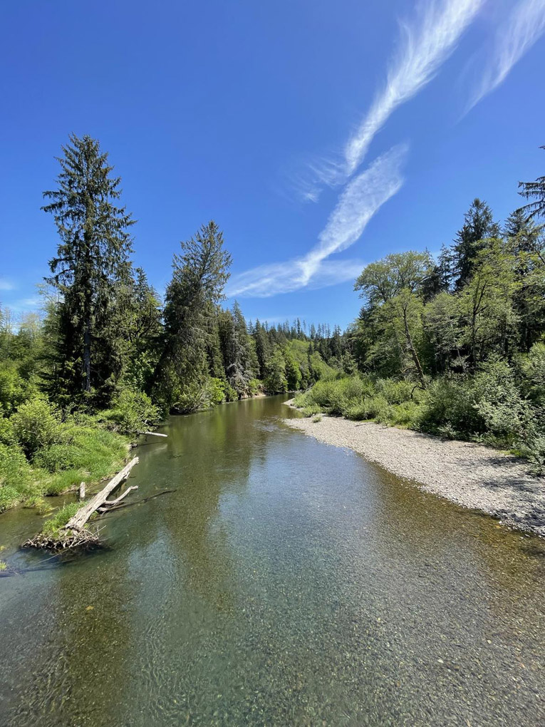 Choose to return to the parking lot or walk underneath the bridge towards Willaby Campground. Here you can get a view of Lake Quinault. The lake was formed by glaciers 15,000 years ago and its waters were fed by Anderson Glacier until that source fully melted in 2015.